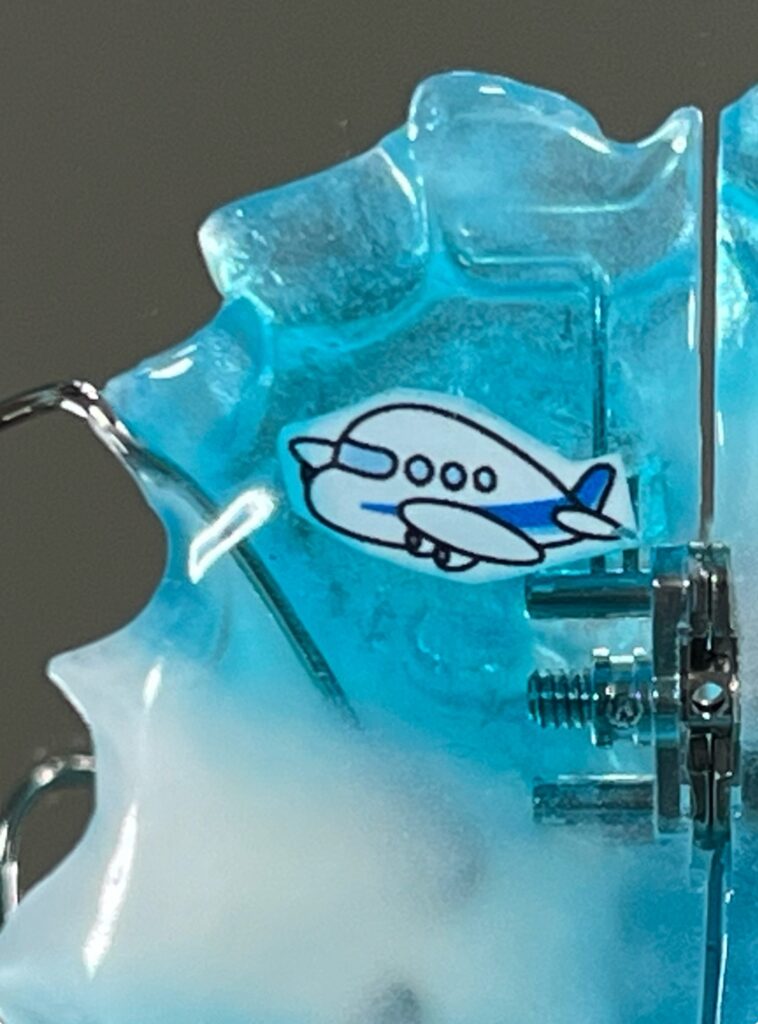 飛行機を入れて、色は白とターコイズでオーダーをいただきました。
